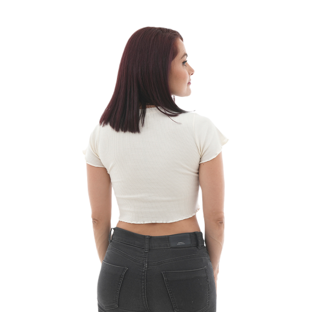 - Manga corta con ruche decorativo en los ruedos