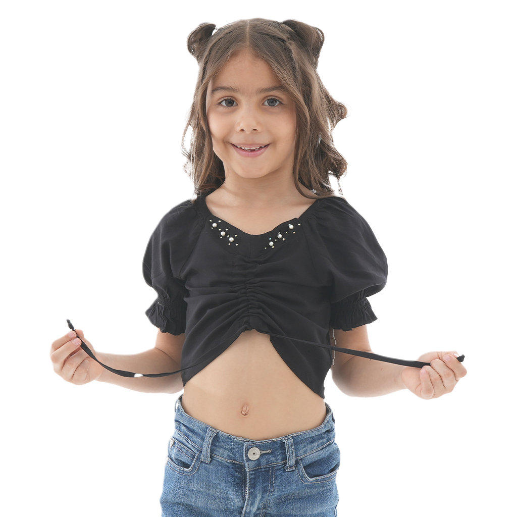 Blusa elaborada en tela chalis viscosa muy fresca, suave, con buena caída y mucho movimiento. Ideal para usar en climas templados y cálidos.