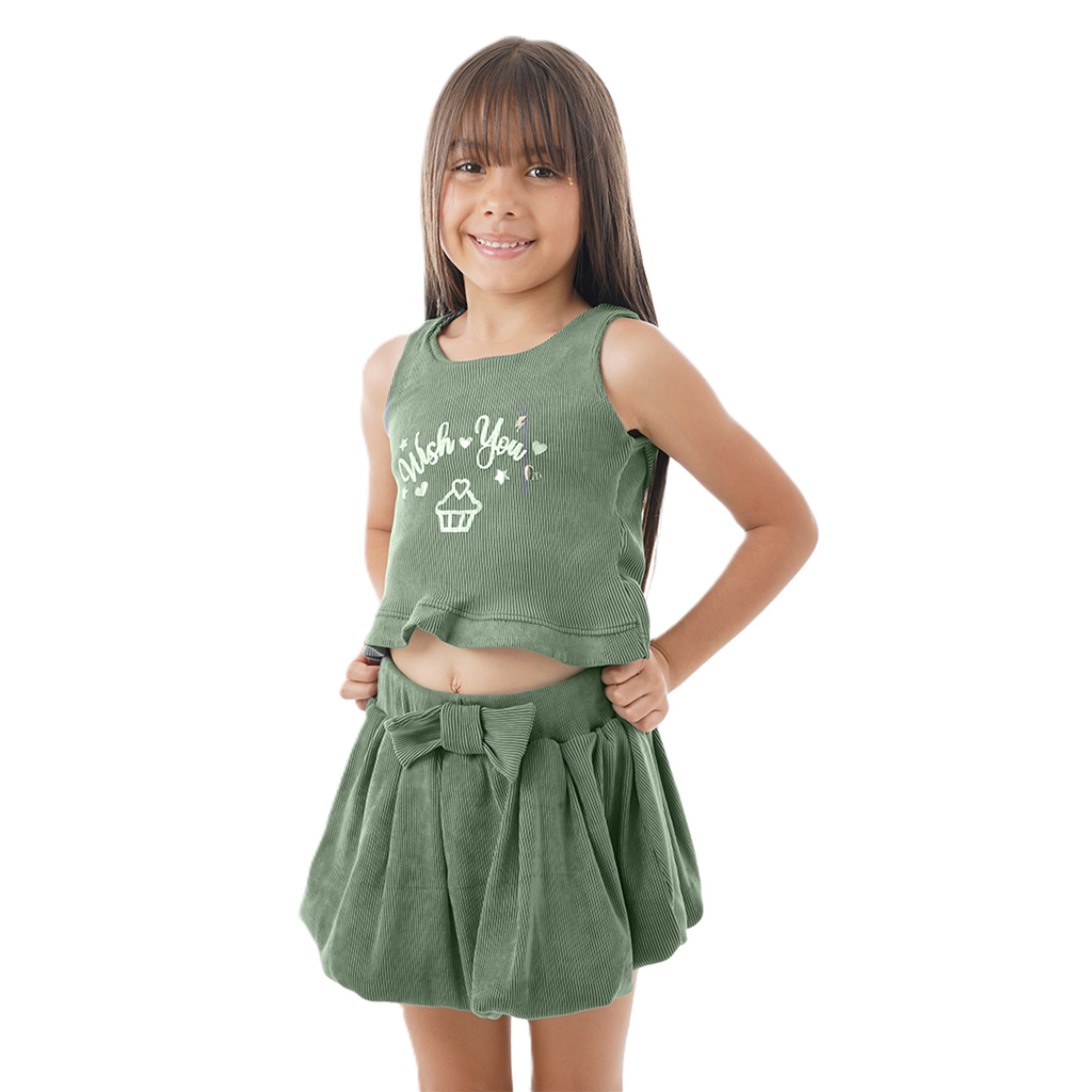 Conjunto blusa/falda elaborado en tejido de punto transpirable, cómodo y fácil de cuidar. Brindando suavidad y elegancia al caminar.